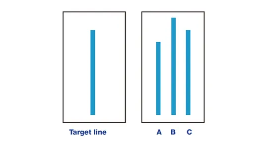 In a famous 1951 experiment by Solomon Asch, people looked at a picture of three lines (below) and were asked to choose which line was the same length as a “target” line, right in front of them.